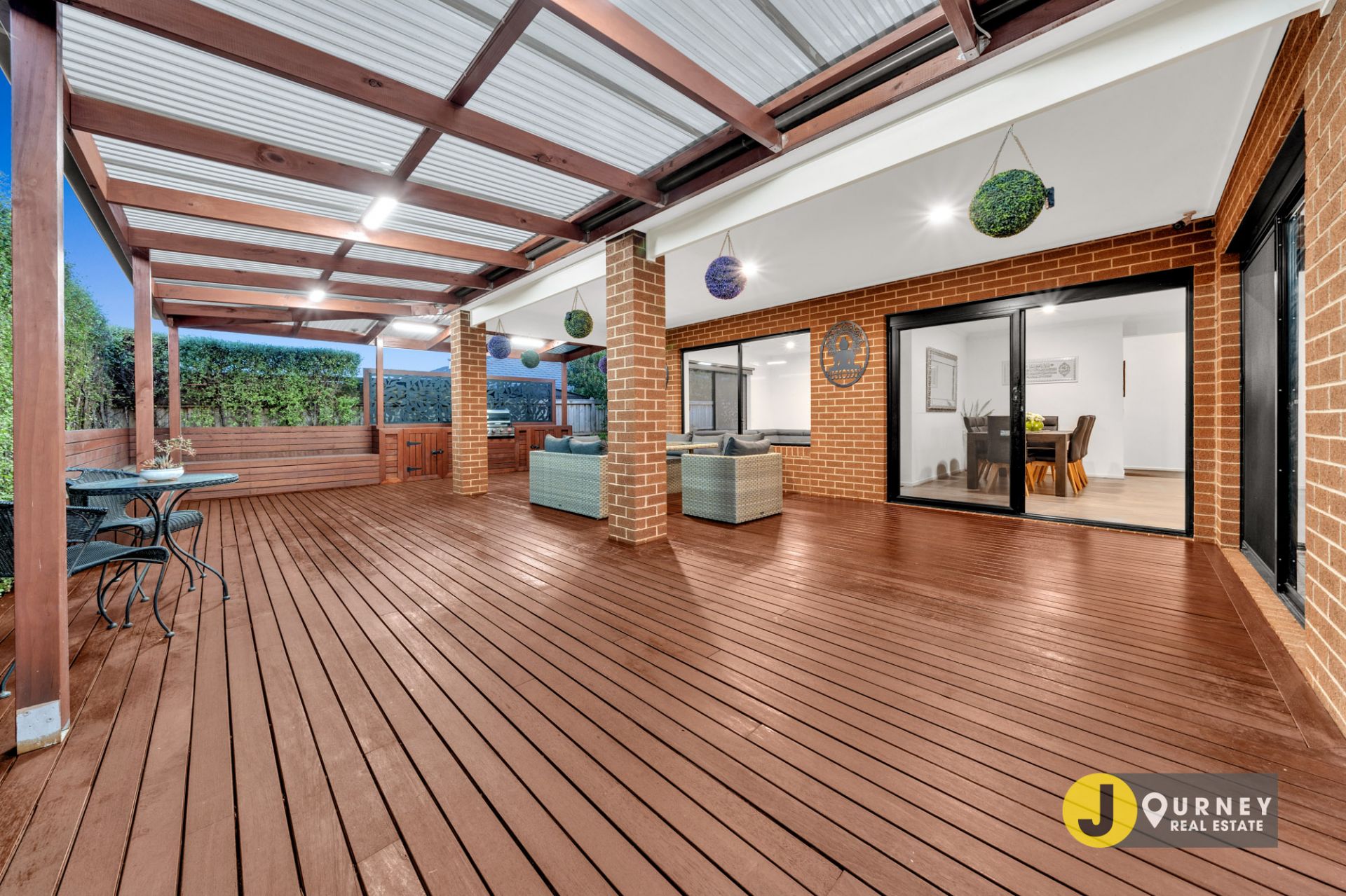 - A beautiful decked alfresco area which extends beyond the roofline fitted with inbuilt BBQ – perfect for hosting any event at any time of the year - leading out to the manicured & low maintenance rear yard