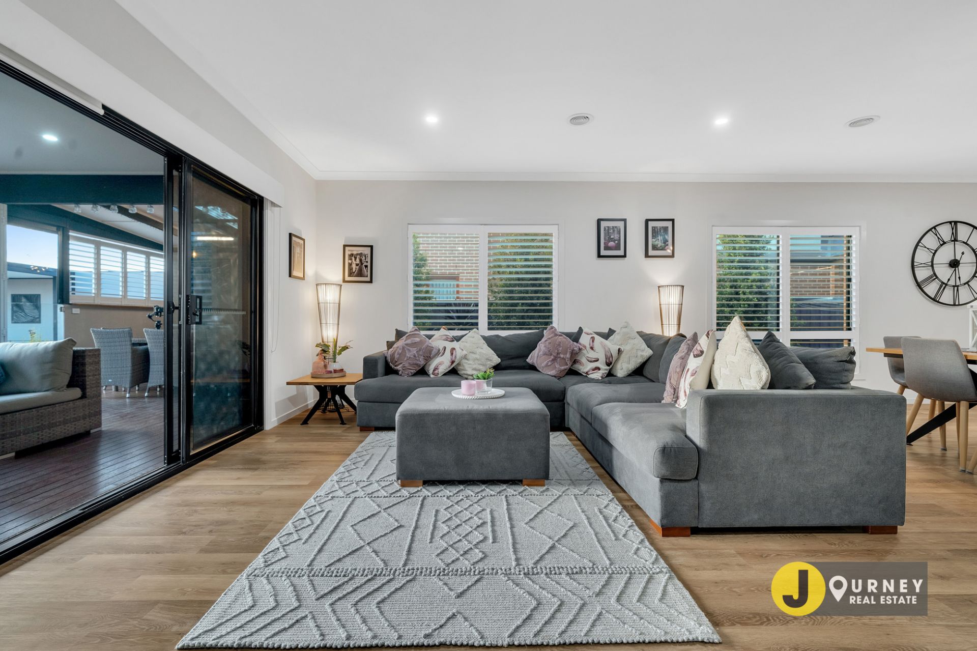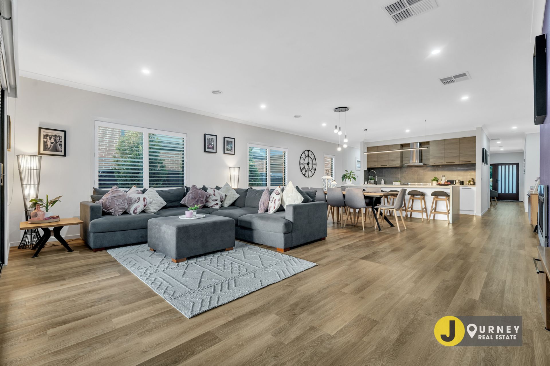 Hybrid floors set the tone, carpet throughout the rooms and quality light fittings all enhance the mood. Big windows through all living zones allows a lovely light all day. Comforts include evaporative cooling and ducted heating, plantation shutters throughout, soft carpets in all the bedrooms, fully landscaped gardens, and decked up outdoor entertainment area.