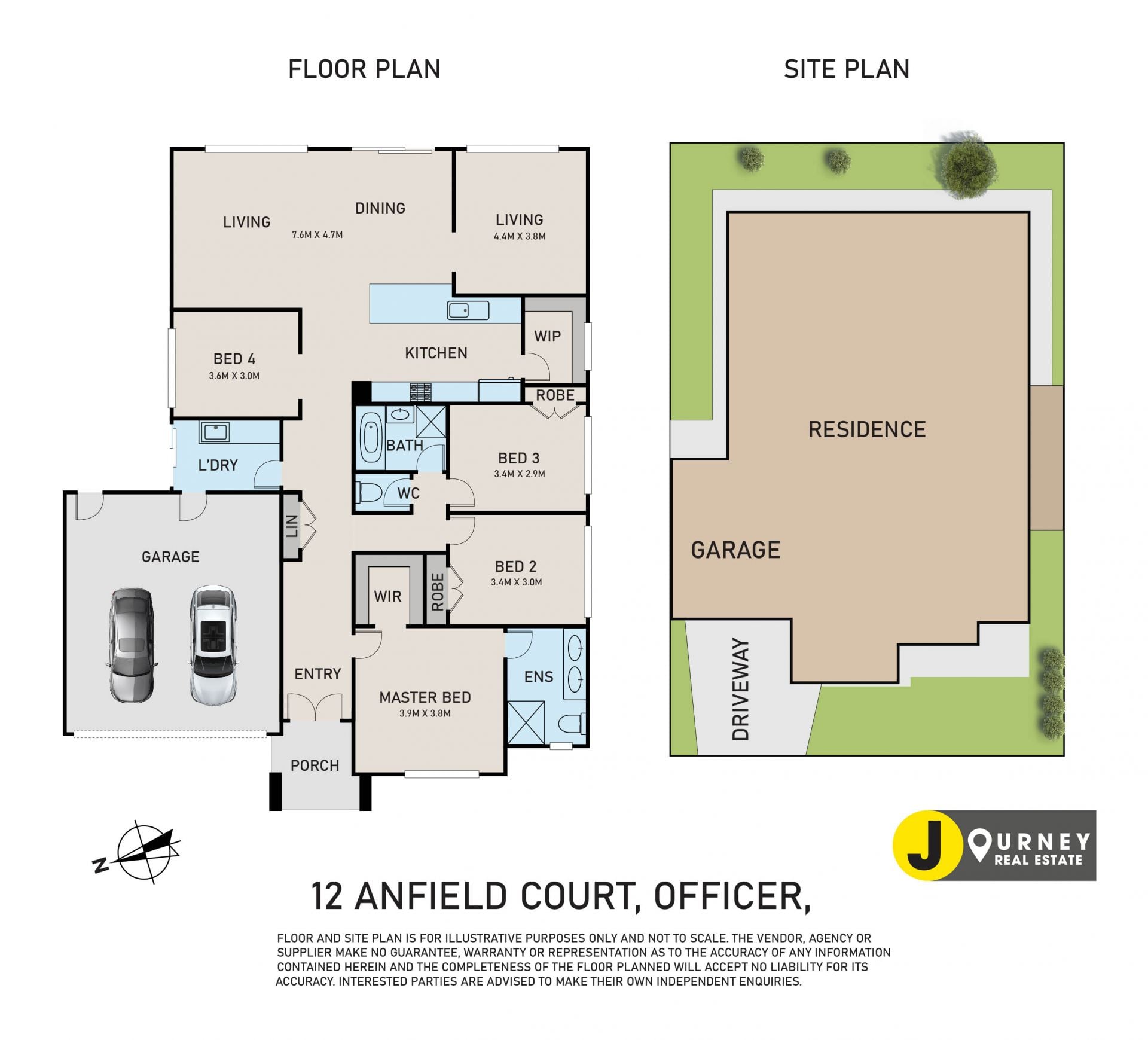 The master bedroom features a walk-in robe as well as access to a private ensuite with a walk-in shower and double vanity while the remaining bedrooms are inclusive of built-in robes.