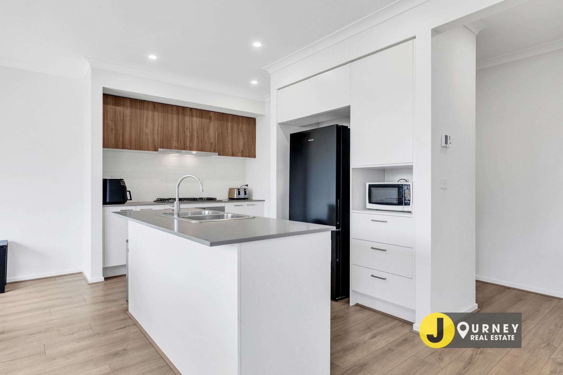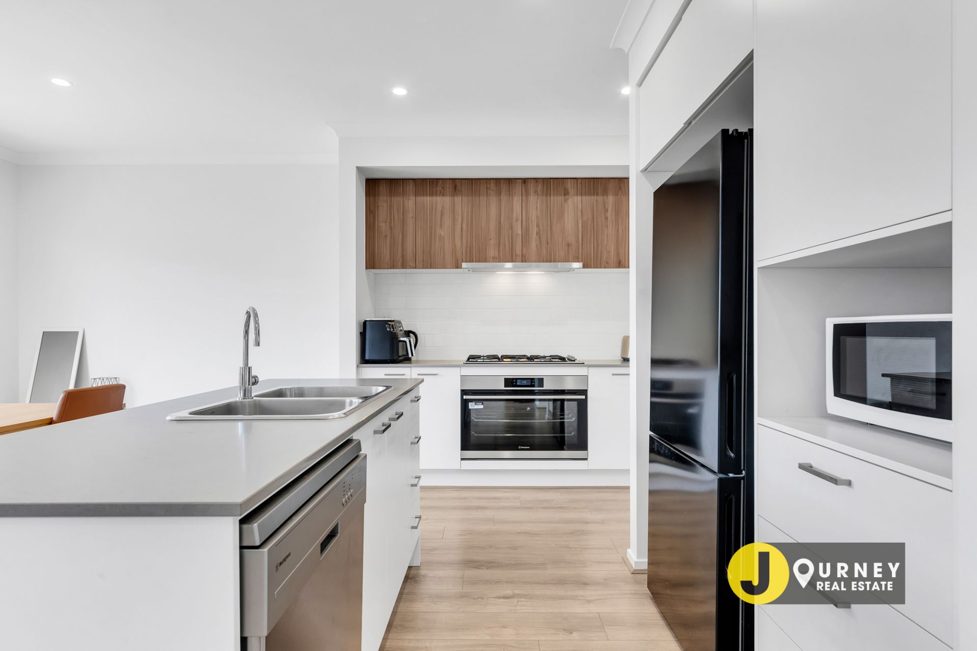 -Modern kitchen with stainless steel appliances, stone benchtops & walk in pantry