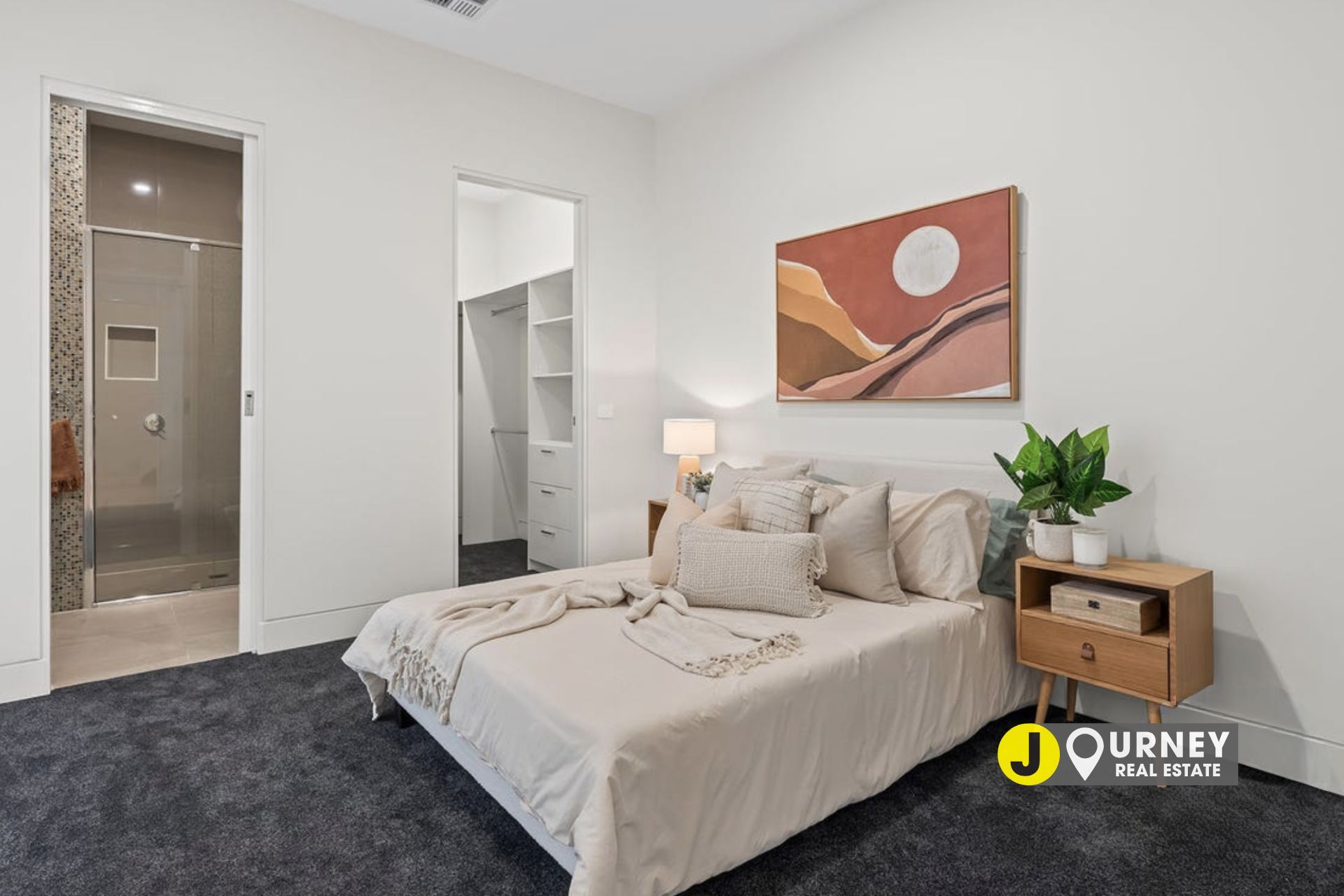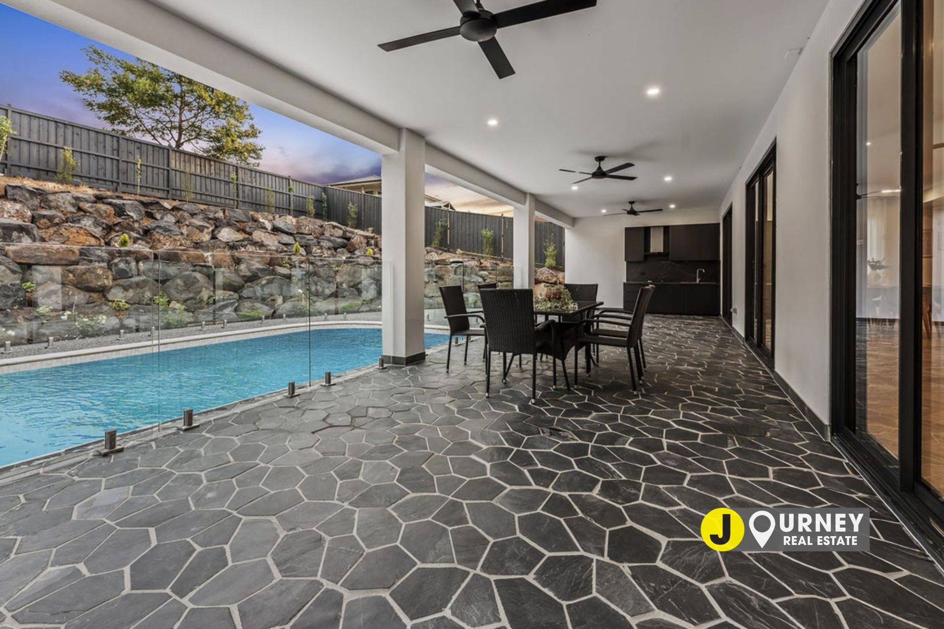 Upstairs, you're greeted by a large open void with a modern chandelier, space for a study nook alongside the door to a balcony that offers heart-stirring views. The accommodation on this level consists of the master bedroom that epitomizes luxury with its size, dressing room, large walk-in robe, and ensuite. The ensuite, continuing the grand feel with its space offering, features two vanities with a stone benchtop, a separate toilet, an oversized shower, and a freestanding bath. The remaining bedrooms are spacious, with two featuring walk-in robes and ensuites and one with a built-in robe, all serviced by the kitchenette in the hallway. The kitchen seamlessly flows out to a patterned concrete alfresco area with an outdoor kitchen, perfect for entertaining or watching the kids cooling off in the pool on hot summer days all in the privacy of a fully retained backyard providing a private retreat. Additional features include: - Aluminium windows, Air conditioning, ducted vacuum, large laundry with storage and stone bench top, security alarm and cameras, upgraded fixtures, and fittings throughout, ceiling fans in alfresco, not to forget huge storage space above the garage ceiling with access through the garage. This home is set to redefine the standards of modern living. Every detail has been carefully considered to cater to the needs of a contemporary family.